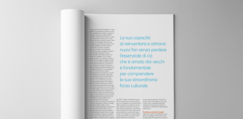 Grazie all'expertise del Gruppo Allianz e alla stretta partnership con le più importanti case di investimento, il magazine ospita articoli che coprono un’ampia varietà di argomenti: a partire dalle view di mercato, agli investimenti tematici, passando per i valori del brand Allianz e l’impegno del Gruppo per uno sviluppo sostenibile. Numerosi temi che mettono anche in luce i principali valori di Allianz Bank Financial Advisors, quali cura e vicinanza alla clientela, professionalità e resilienza. Importante spazio è inoltre dedicato ai macrotrend, ai passion investment e alla filantropia, nonché alle eccellenze italiane.
